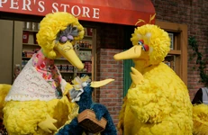 SCENE cont'd | Big Bird finds Cookie Monster, posing as his Granny Bird. After having a Little Red Riding Hood moment, Cookie's cover is blown when the real Granny Bird arrives. She offers him one and they all share the cookies, except Alan, who claims he's on a low-birdseed diet. |