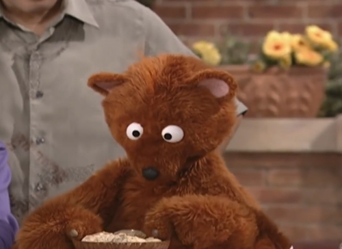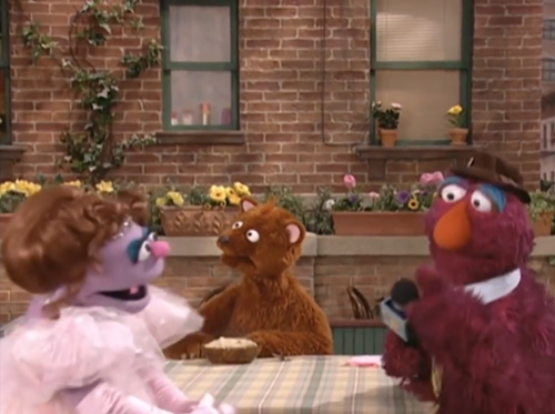 SCENE cont'd | Satisfied, the Wizard calls them all "a cabbage," in a taxi cab. As they drive off in an invisible car, the cabbage warns them, "I hope you got money for tolls." The plot wraps back on Sesame Street with Baby Bear concluding the story and eating his porridge, which has cooled off. |