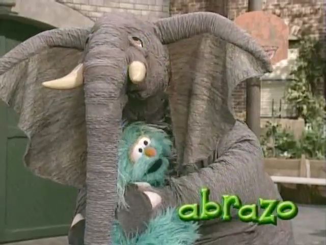 Muppets | Spanish Word of the Day Rosita offers her elephant friend un abrazo. The elephant is surprised to learn that abrazo means "hug", but then offers Rosita un abrazo in return. (First: Episode 4064) cut from the online version |