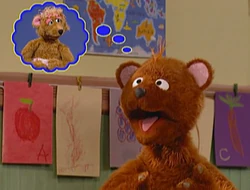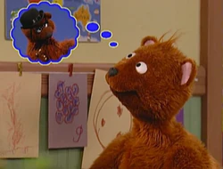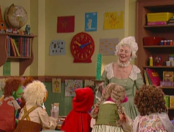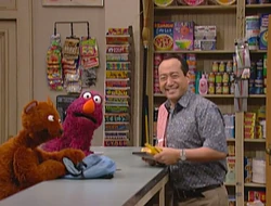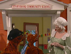 SCENE | At Hooper's Store, Alan is busily getting school supplies for Baby Bear, when Telly notices the viewer and is glad that they are here. Today is Baby Bear’s first day of school at the Storybook Community School, a school for storybook characters to begin their education. Just then, Papa Bear arrives to pick up Baby Bear and they both go on their way as Alan wished him luck. cut from the DVD version |