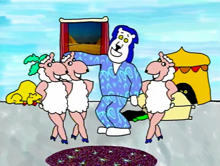 Cartoon | A lion sings "Dance Myself to Sleep." Artist: Sally Cruikshank (First: Episode 3848) |