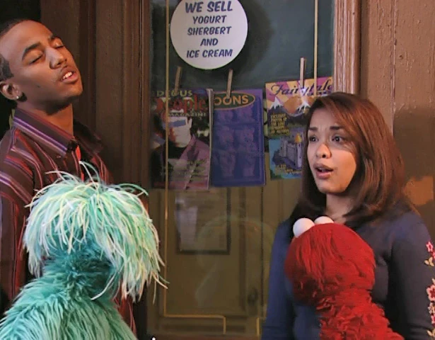 SCENE, cont'd | Later in the day, a new crisis erupts: Miles accidentally locks himself out of Hooper's Store, locking Elmo's ice cream treat inside. Disaster seems imminent. Fortunately, Gabi calls Oscar on her cell phone and recruits Slimey to help them again. The intrepid worm slides under the door, retrieves the key, and saves the day! |