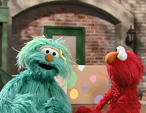 SCENE, cont'd | Elmo and Rosita are in the yard and prepare to unveil the letter of the day from a box. Unfortunately, the letter is incomplete! However, not all is lost: Slimey, happily wearing his superhero cape, triumphantly appears and completes the letter! |