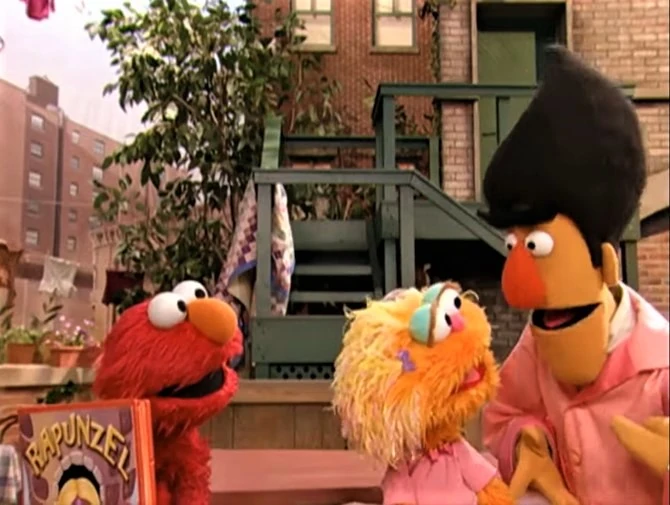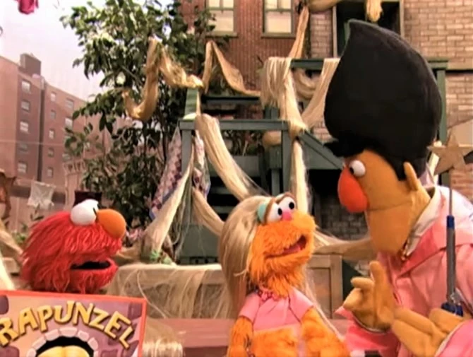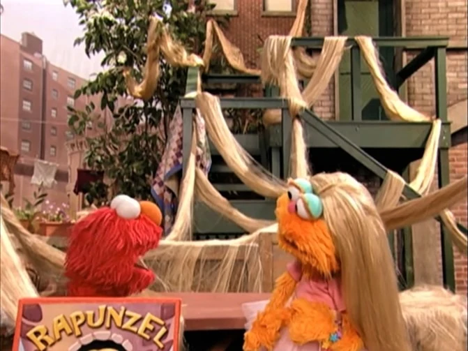 SCENE | Gabi and Miles dramatize the story of Rapunzel to Elmo and Zoe. After they finish, Zoe mentions that she wished she had long hair like Rapunzel did. |
