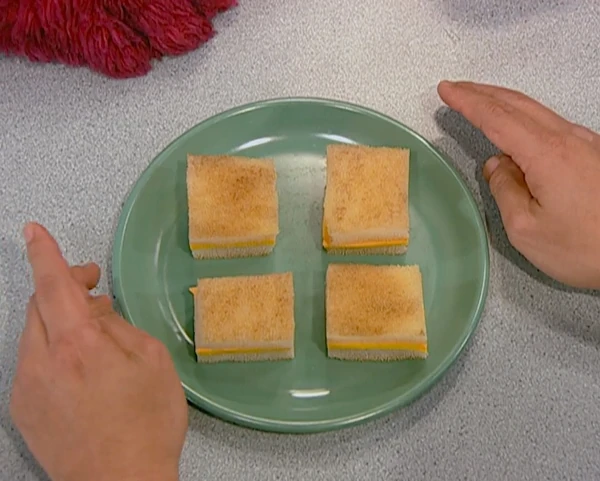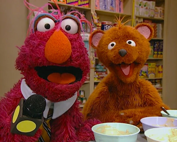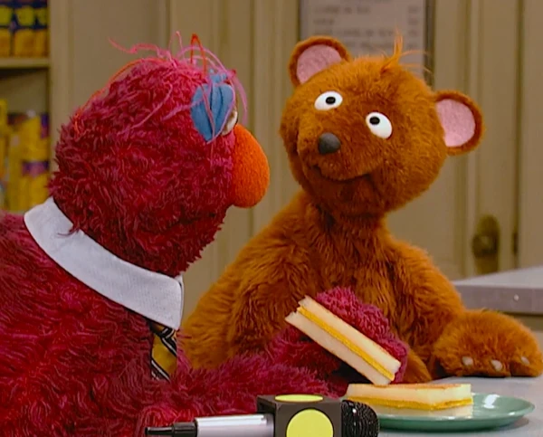 SCENE, cont'd | Baby Bear takes the microphone and narrates while Telly tastes the square-cut sandwich. To his surprise, it tastes "just as yummy" as his usual sandwich. |