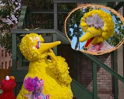 They almost sing it again, when Abby Cadabby appears in a poof, and asks to join them. Suddenly, Big Bird realizes the song won't work this time, because it's a song for two, and if Abby joins them, they won't be two anymore, but three. What to do? Abby suggests making herself disappear, but that turns out to be not such a good idea. |