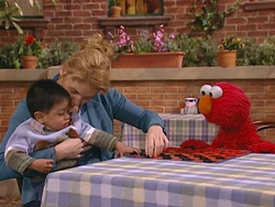 When Gina returns from Hooper's with Marco, she finds Elmo sitting in Marco's stroller, pretending to be a baby himself! Gina plays along, but wishes Elmo could be himself again so they can play their game. |