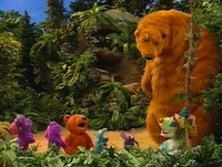 One weekend, Bear decides to start a new hobby --- "whittlin'." He gets a block of wood and an instruction book, but finds that his early efforts don't look much like the duck in the book. He determines, however, to keep trying. Meanwhile, the kids in the Big Blue House are exploring talents of their own. Ojo continues working on her bike-riding, while Pip and Pop have developed a synchronized-swimming routine. Treelo searches all over for his talent. Tutter, however, experiences a lack of confidence when he learns how great Rita is at kicking the ball in soccer. He tells Bear that he's quitting the team.