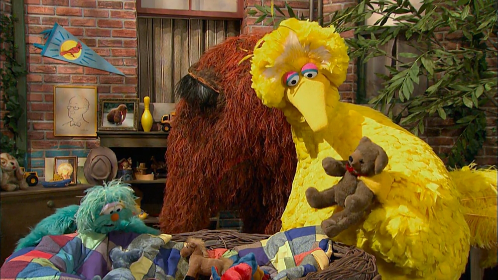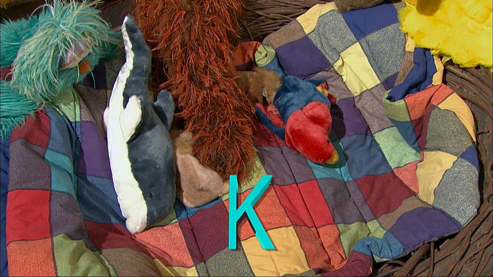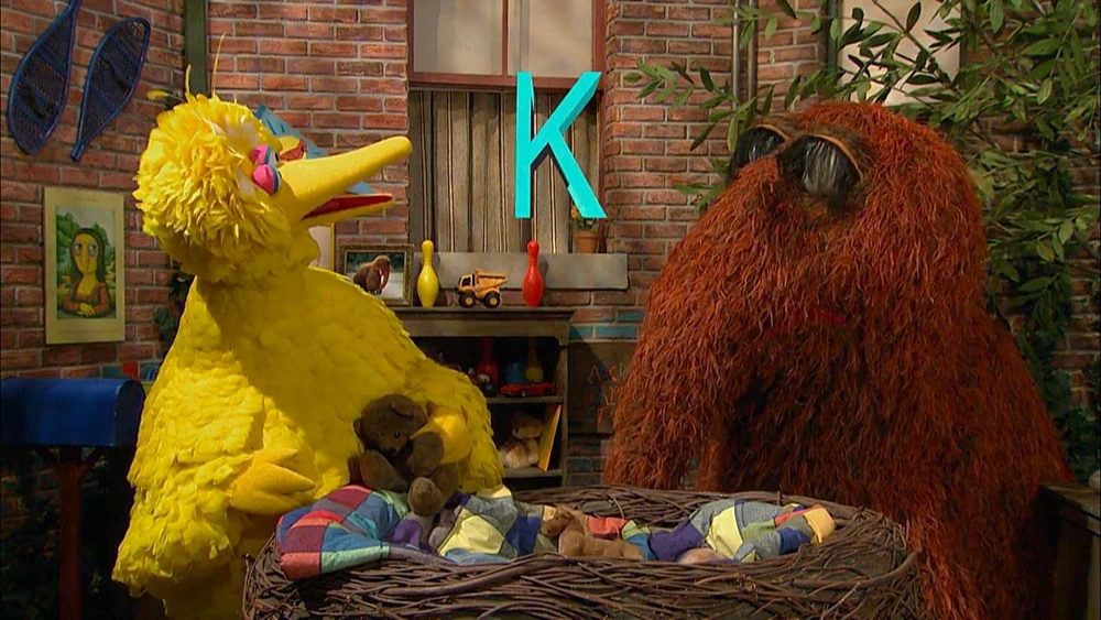 SCENE 2 | Big Bird and Snuffy host a nest sale. Rosita comes rushing in, looking for the letter of the day, K, and finds it in Big Bird's nest. |