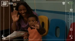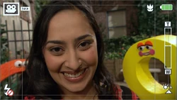 SCENE 1 | Leela welcomes the viewer to Sesame Street, and shows us the new video camera she's using to make a video of her new home, which she wants to show to her parents in India. She aims the camera at the laundromat where she works, and has everyone inside wave at the camera. |