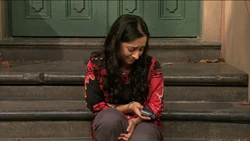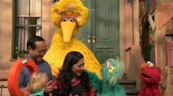 Leela sits down on the steps, feeling sad. Meanwhile, Alan gathers Elmo, Rosita, Prairie, Big Bird and the O to come to Leela so she can get a shot of all of them, which turns into a quarrel as Cookie Monster continues chasing the O. Leela is once again happy after showing her parents the most amazing part of Sesame Street...her friends. |