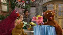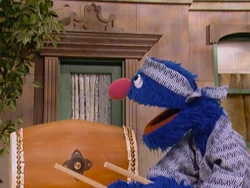 Muppets | Global Grover: Grover has just swung all the way from Kauai, Hawaii on a banyan tree vine. He was there visiting his Japanese-American friend Miles. Miles and his family taught Grover how to play the Taiko drum. Grover has forgotten his drum back in Kauai. While he swings back to go get it, the segment cuts to a film showing Miles' parents teaching him and his brother how to play the Taiko drum. They put on a performance with their father wearing traditional Japanese costumes. (Grover appeared in a different Taiko costume for PR shots.) (First: Episode 4130) This segment replaces "Murray Has a Little Lamb" in the Sprout version. |