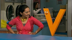 Insert | The V/11 helps Leela announce the sponsors. Rosita runs by and sees she's found the letter V, until it splits into an 11. Rosita keeps changing her mind as the number/letter continuously changes form, and Leela decides to do some laundry. |