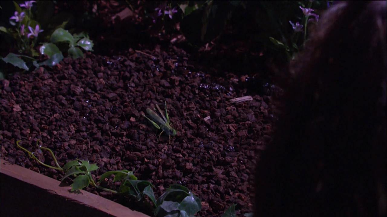 SCENE cont'd | In the garden, they put the bug in the dirt to sleep. Elmo, tired as well, is carried back to the apartment, wishing the grasshopper to sleep "as snug as a bug in a rug." |