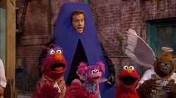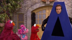 SCENE | Elmo, Telly and Abby are hanging out, when they hear a cry of "A!" They meet Big A (Ryan Reynolds), who invites them to join the A Team, where they will solve problems using A words. They agree to join and get on some A outfits. A theme song follows. Suddenly, they hear the sound of the letter A being yelled and they follow to see what the problem is. |