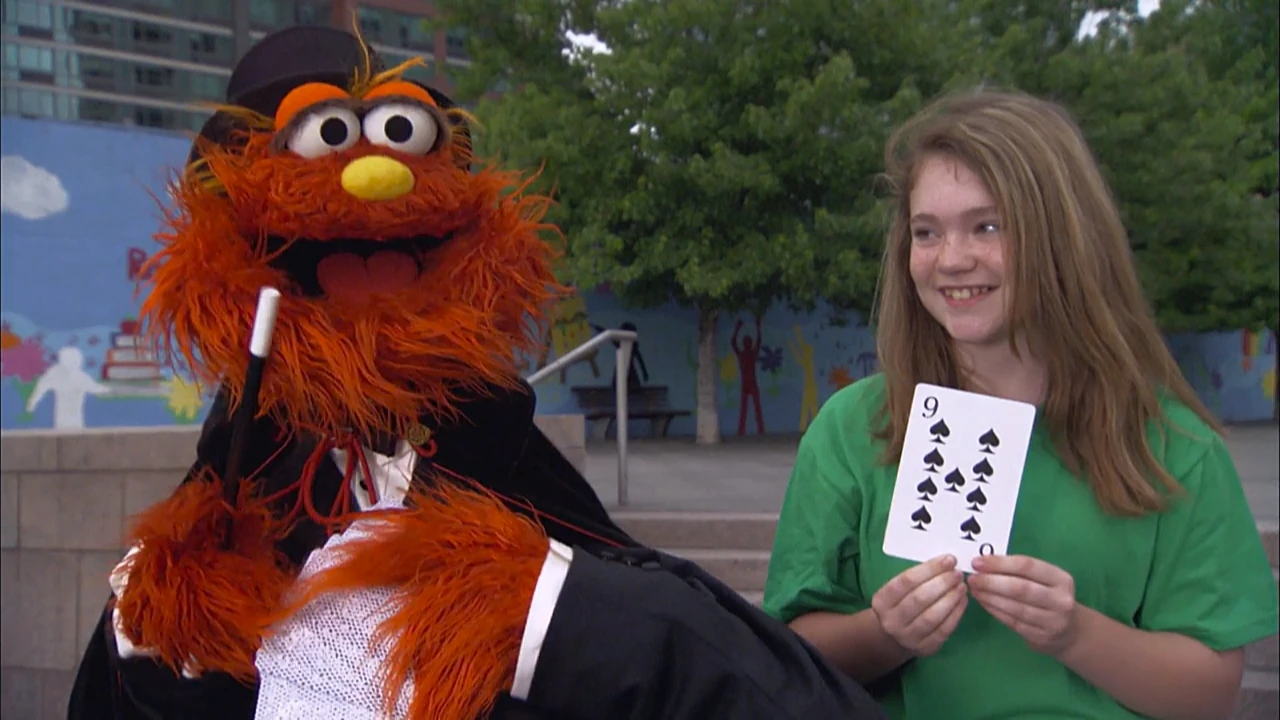 Muppets | "Super Grover 2.0" is coming soon, but Magic Murray has a trick to show first. Zina picks a number 9 card from his deck and he guesses what it is without looking. |