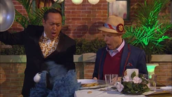 SCENE cont'd | Speak of the devil, Cookie appears, having flown home on the Red Eye once his aunt ran out of cookies. Soon after, the Cookie Connoisseurs arrive, led by Commander Chiphead (played by David Hyde Pierce). Alan tries to get rid of Cookie by having Chris take him to a bakery (or Canada), when Cookie spots a treat in Alan's hand and decides to stay. Chiphead explains the cookies are for the club and only members may have them. Cookie wishes to be a member to get the cookies, but there are things he must do first. |
