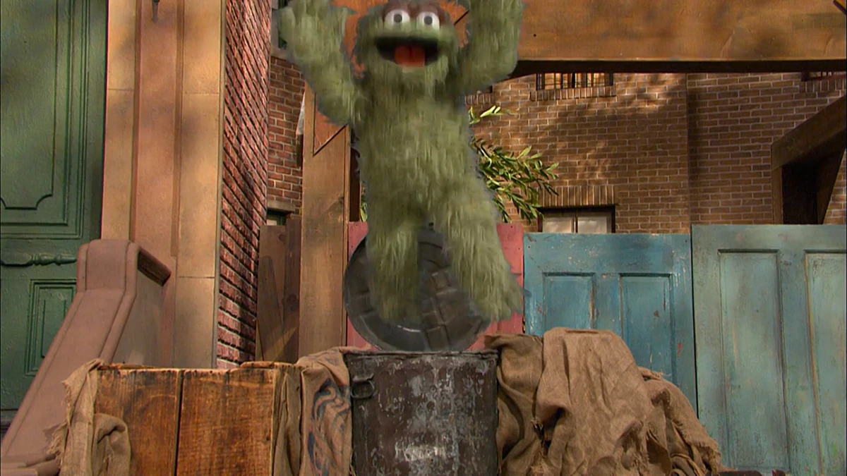 SCENE contβd | Abby poofs herself into Oscarβs trash can. Abby tries to find Oscar in the dark, but ends up smooching his pets. Fearing he may be next, he bounces on his trampoline and sky-rockets out of his trash can. |