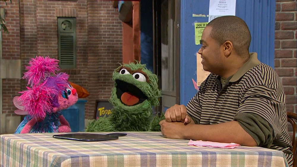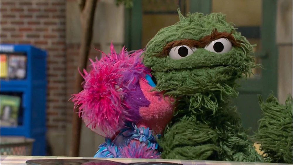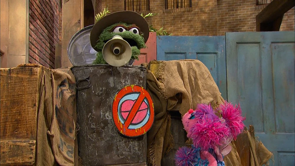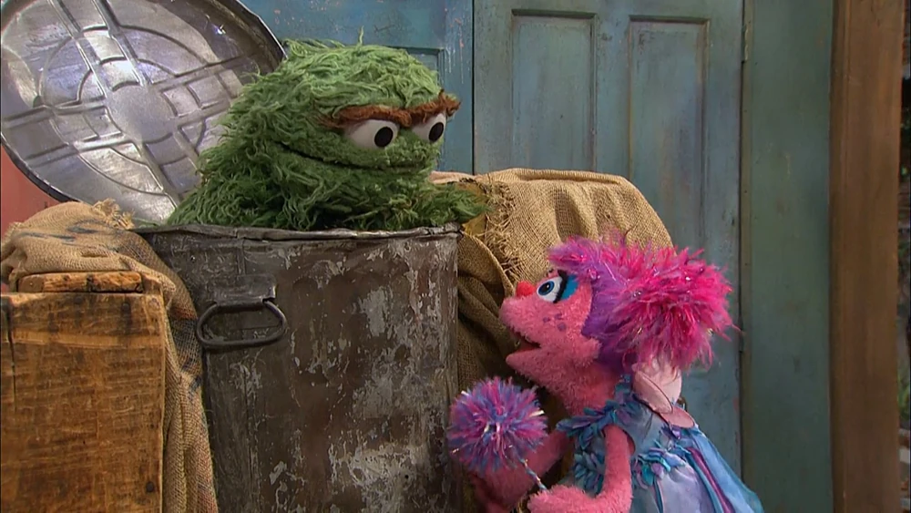 SCENE contβd | Back in reality, Abby believes itβs her duty to kiss Oscar and make him a prince again. She tells Oscar sheβs going to kiss him, but he thinks otherwise. She floats up to his trash can, but he shuts the lid and emerges again with a protective mask on. He then hangs a βNo Kissingβ sign on his trash can and announces (using a megaphone) that his trash can is now a no-kissing zone and that heβll be staying in his trash can forever (ordering from βSzechwan Grouchβ for food). Abby gets an idea how to reach him... |
