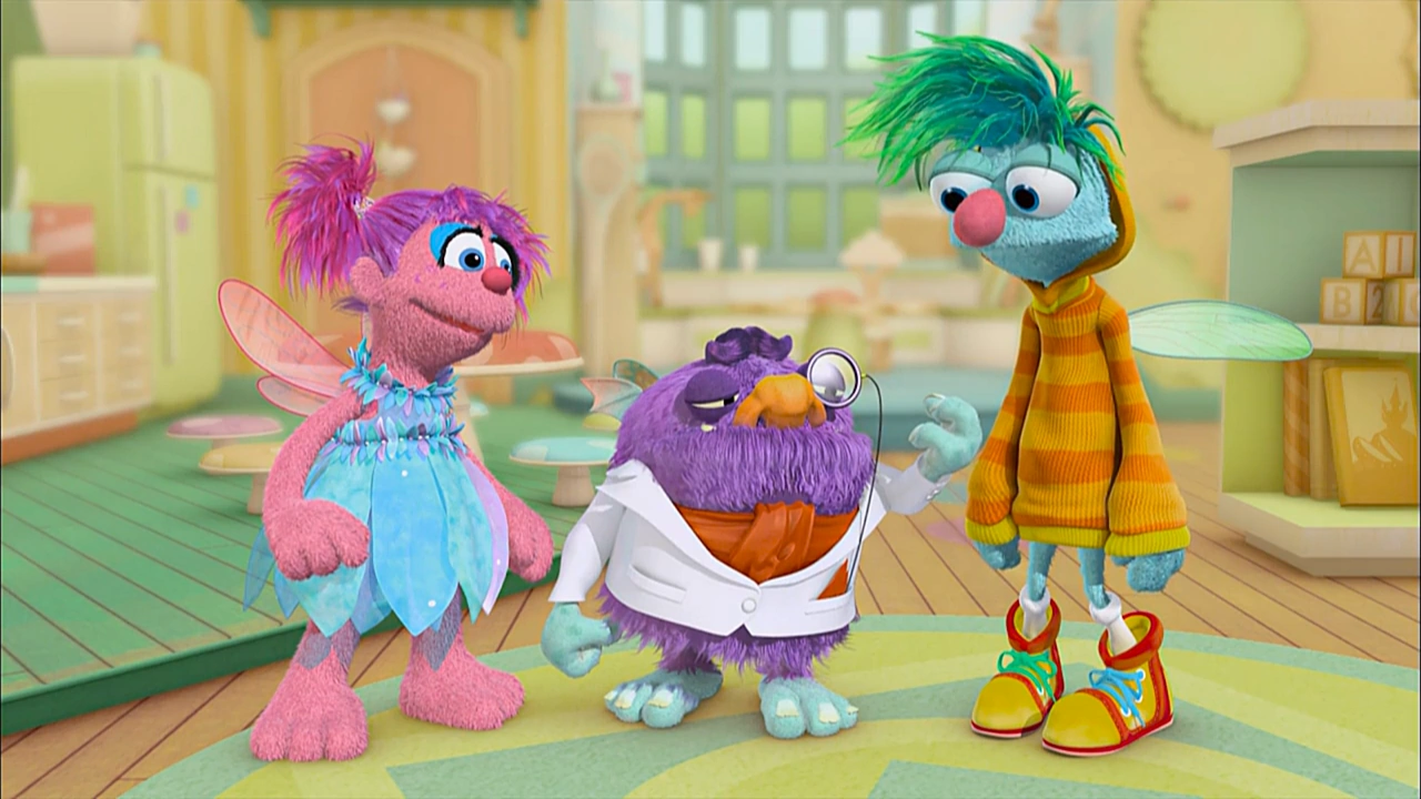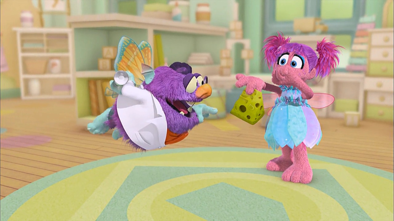Muppets / Animation | Abby's Flying Fairy School Mrs. Sparklenose is teaching the students opposites today, though BlΓΆgg doesn't grasp the concept as easy. After Gonnigan and Abby demonstrate, he tries to use their opposite spell on Gonnigan, but uses it on himself instead. Suddenly, BlΓΆgg becomes the opposite of himself, wearing posh clothing and being obsessed with cleanliness (constantly giving Niblet a bath). Gonnigan likes having a less-disgusting friend around now, but Opposite-BlΓΆgg ruins their playtime by putting away their blocks and refusing to wear the wrinkled costumes. Abby and Gonnigan learn that to change him back, BlΓΆgg has to do the spell on himself. Abby tempts him with his favorite stinky cheese, but he instead is frightened by it. Everyone muses about the old BlΓΆgg, making him realize the right thing to do is to change himself back. (First: Episode 4277) |