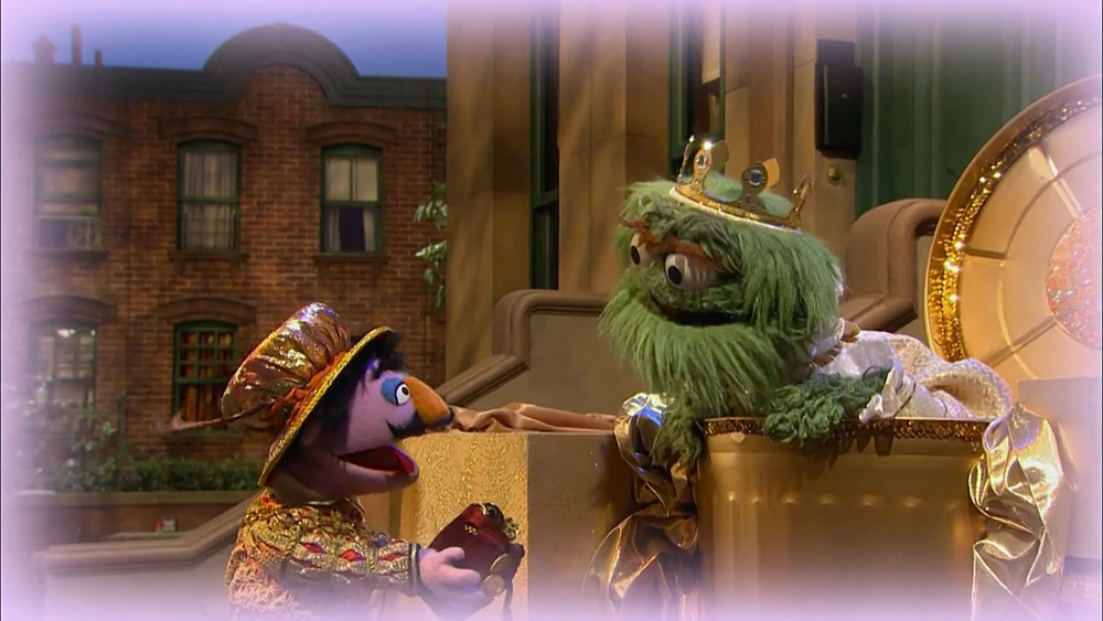 SCENE cont'd | As Abby walks down the street, she finds herself amazed that a frog of all things could be an enchanted prince. While Oscar deals with a man with some trash behind her, Abby wonders if some on Sesame Street could be a prince. She sees and Oscar and gets the idea that he may be an enchanted prince! |