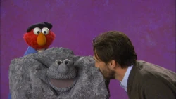 Muppets / Celebrity | Elmo is busy making a visual aid for Jon Hamm's explanation on what a sculpture is, so he finds various ones of different materials (and increasing weights). Just before Jon gets a hernia, Elmo finishes his sculpture - a likeness of himself, which thanks Jon for his compliment. |