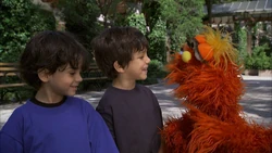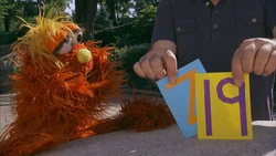 Muppets / Celebrity | Zoe watches as Lorena and Lorna Feijóo perform their version of the Lamberena dance. Zoe notes how similar their version is to her own, only hers involves a dancing lamb. (First: Episode 4186) |