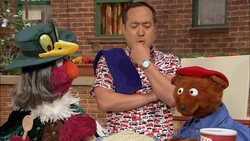Muppets | "Elmo the Musical" is up next, but now, Murray receives a puppetry lesson from Paul. He shows him how to make puppets from ordinary objects and even produce effects like clouds, snow and hail. |