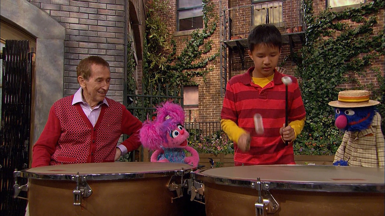 SCENE cont'd | While Grover digs through his briefcase, Abby spots the timpani nearby and Bob has Zachary show them how it plays music. Abby decides this is the perfect instrument for her and Bob allows her to play with the class. Grover reveals he doesn't know how any instruments work, but Abby suggests he sing along. Together, they perform "Great Vibrations." |
