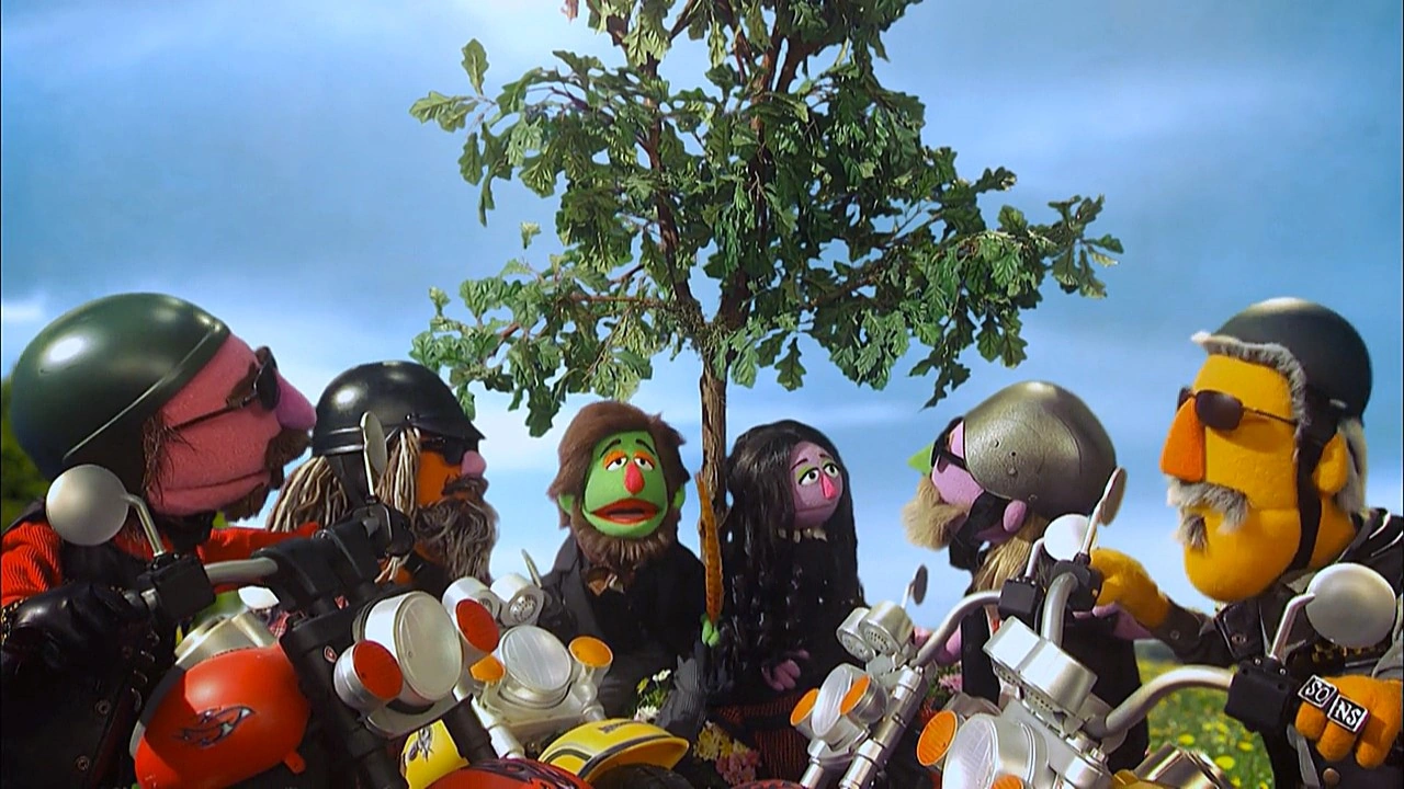 Muppets | Sons of Poetry Mr. Browning needs a rhyme for the end of his love poem (rhyming with "blue"). His lover, Ms. Barrett tries to point out it's "you" (meaning her), when suddenly, the Sons of Poetry disrupt their quiet scene with their rambunctious motorcycles. They come up with some rhymes, including "shoe" and "moo," until they suggest "stew." Mr. Browning accepts it, loving stew. Ms. Barrett, offended, rides off with the Sons. |