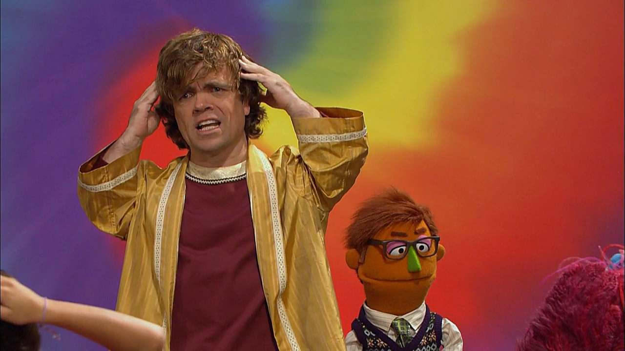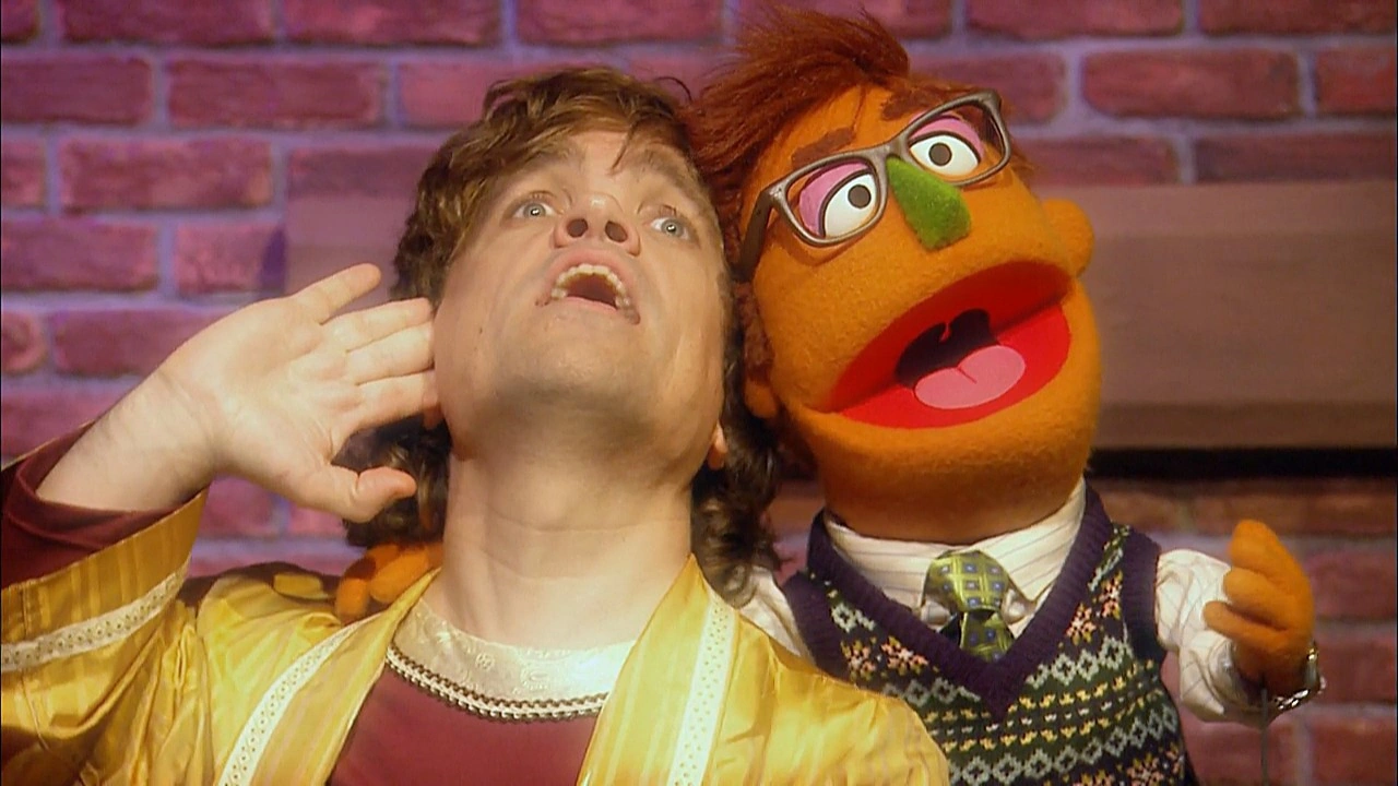 SCENE cont'd | Suddenly, Philip appears, introducing the man everybody listens to, Simon (Peter Dinklage)! Telly asks him why everyone must do what he says, and Simon sings a song about how ever since he was young, people have just done "Whatever Simon Says." Philip, sick of living in his brother's shadow, constantly mutters remarks against him. Telly still isn't sure he'll compete, until Simon uses his Jedi-like powers of persuasion to get him to play. |