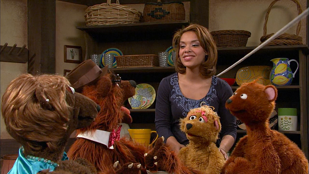 SCENE cont'd | Gabi asks the children what they want to do now and Baby Bear claims that Grandma Bear would sing some golden-oldie bear songs, but Gabi doesn’t know any. However, she believes they can make up a new one and she cranks up a beat. She makes up a new song called “Doing the Bear,” which Baby Bear loves. Now, Gabi wants to play a game (which is exactly what Grandma Bear would do now), but she doesn’t know any bear games. Baby Bear finally sees the light and realizes “Curly” doesn’t have to do everything the same way they did it before. They begin playing all sorts of games, such as tag and “Ring Around the Rosie.” |