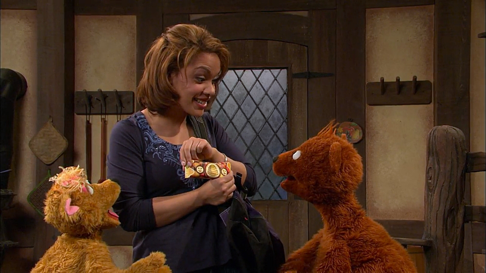 Muppets / Celebrity | Kim Cattrall thinks a fairy with flapping wings that sparkle, a blues-singing shoe and a dancing robot are fabulous! (First: Episode 4186) |