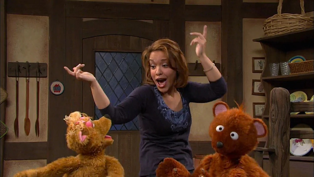 SCENE | Gina plays with Marco and meets an excited Baby Bear and Curly Bear. Baby Bear explains that tonight, his parents are going out to dinner, leaving them with their favorite babysitter, Grandmama Bear. However, Mama Bear and Papa Bear arrive with bad news: Grandmama Bear came down with a cold and can’t come over. Baby Bear is crushed, but Gina points out Gabi nearby and finds her an excellent babysitter. Gabi accepts the job, but Baby Bear doesn’t think too well of it. |