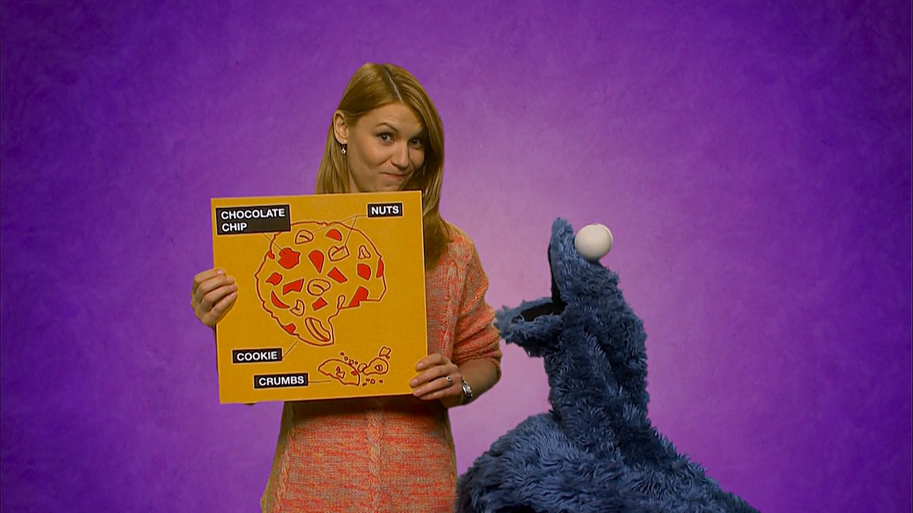 Muppets / Celebrity | Claire Danes and Cookie Monster show off a diagram of car, then of a cookie, which Cookie Monster naturally devours. |