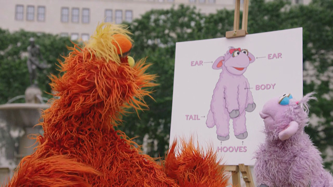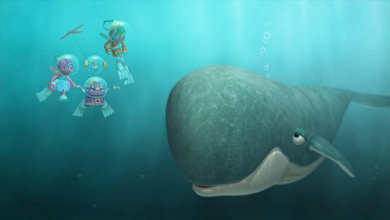 Muppets / Animation | Abby's Flying Fairy School Today, the students play with puppets, but Blögg can’t seem to make his work. He tries using magic to turn it into a real boy, but instead turns himself into a puppet. Mrs. Sparklenose explains the only way he can become normal again is by undergoing the “Pinocchio Process”. The first step is to hop with a cricket, so they poof themselves to a field to find one. After hopping with one, Blögg’s feet become normal. Next, they poof to a farm to do the “Donkey Dance of Joy” with a donkey. However, the donkey is rogue and begins chasing him. They call on Spot, who shows them a brief song about hay. They conjure up some hay, which sedates the donkey and makes him dance, making Blögg gain his arms back. Finally, Blögg must swim with a whale. They poof underwater, but Blögg has trouble swimming and his friends help him. Now back to normal and in the classroom, Blögg uses his wand to operate the puppet. (re-scored theme song) (First: Episode 4188) |