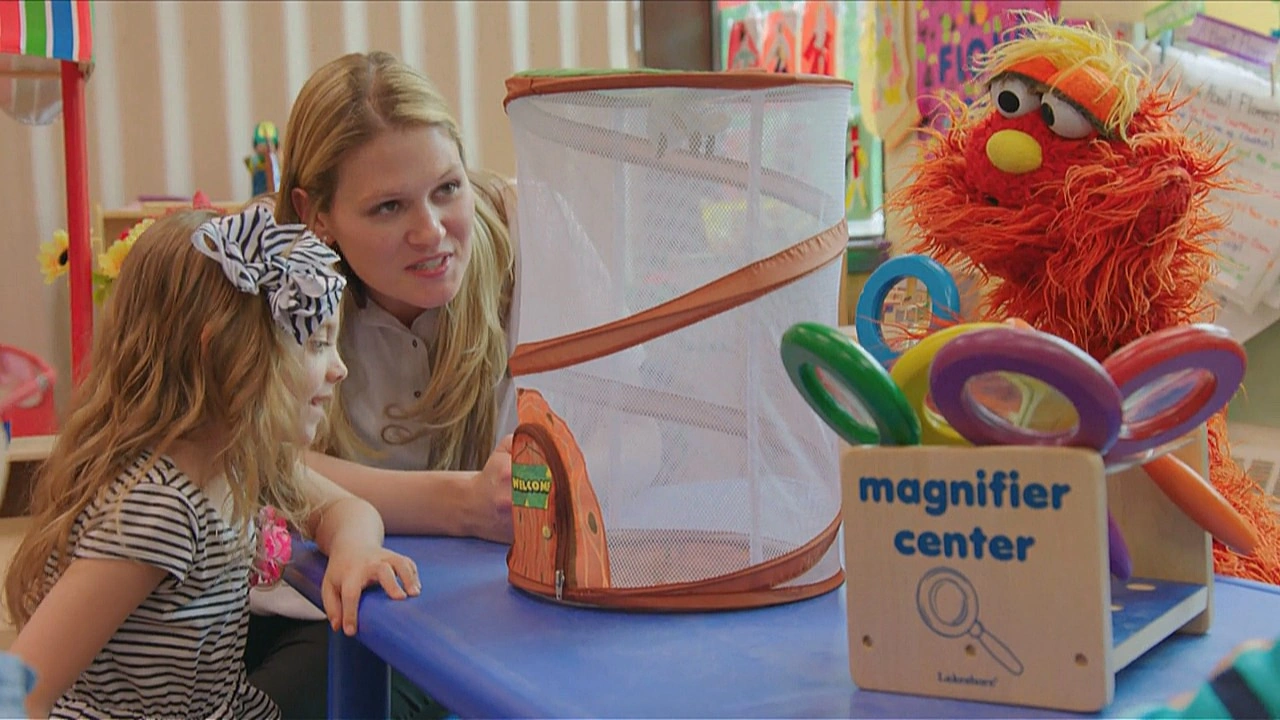 Muppets | Back at pre-school, Murray and Ovejita explore the different centers, including the block center, art center and dramatic play center. Over in the discovery center, Murray and the kids observe a newly hatched butterfly. The teacher teases snack time and Murray cues the next segment. |