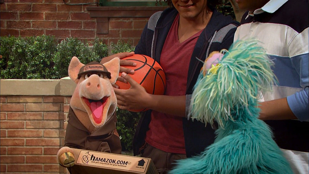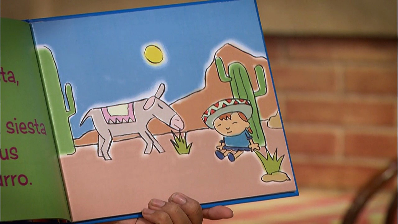 SCENE | Chris welcomes the viewer before he and Mando start a basketball game, when Rosita rushes in, asking if any mail deliveries have been made yet. She's expecting a special package today. Suddenly, a pig representative (Eric Jacobson) of Hamazon.com arrives with her package - a book called Hola, Lola!, about a little Mexican girl (just like Rosita). They begin reading it to her and discover it is just like the other Mexican kid books she has - they all have kids stereotypically wearing sombreros and taking siestas next to their burros. Rosita wishes there was a book that was more accurate to her life. Mando felt that way too, but fixed the problem by writing his own. Rosita decides to do the same. |