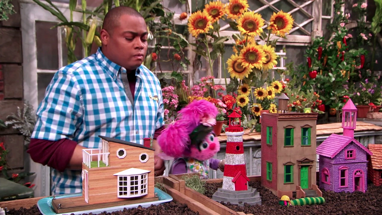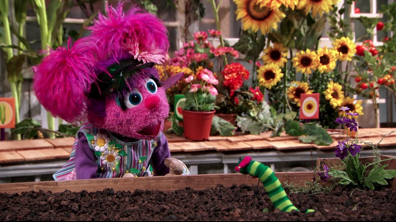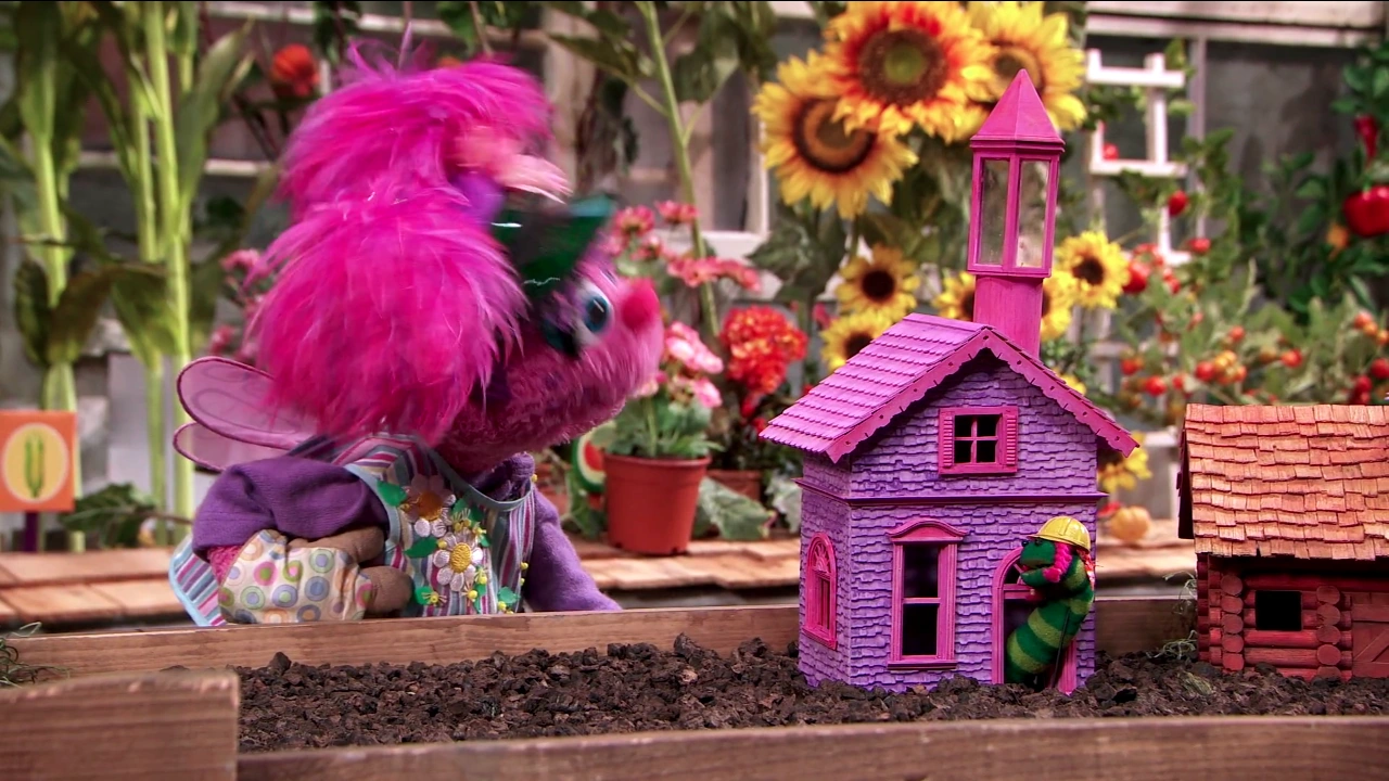 SCENE 1 | Abby inspects her fairy garden, when she meets a worm - Francine Lloyd Wright (her friends call her "Frankie"). She's always kept her head in the mud and is amazed at the sights of the garden. When Abby asks what her home is like, Frankie is confused - she's never heard of a "home" before. Abby explains what one is and shows her some examples of nearby apartments. Frankie instantly falls for a green home (actually Hooper's Store) and rushes toward it. |