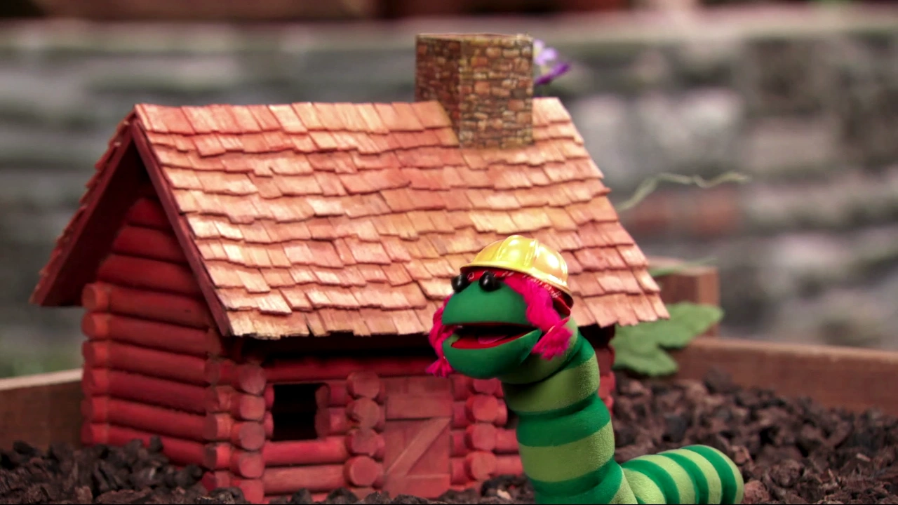 SCENE 1 cont'd | They find Frankie has built several types of homes, all inspired by Abby's book. But, none of them feel like home to Frankie. Her worm family then shows up - mom, dad, brother and Aunt Sticky - to take her back to their spot of dirt. Frankie comes to realize that a family makes a house a home and they've been what's missing the entire time. She reunites with her folks and they dig back into the ground. Abby then allows the various insects and bugs of the garden take residence in all of Frankie's constructions. |