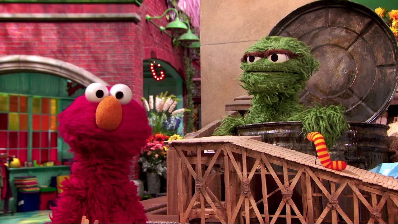 SCENE 2 | Elmo feels like building some more, so Oscar recommends he build another ramp for Fluffy. |