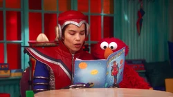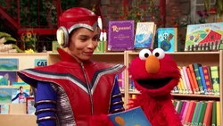 SCENE 2 | Elmo and "Galactic Gail" read the comic book together and encourage the viewer to visit their own library. |