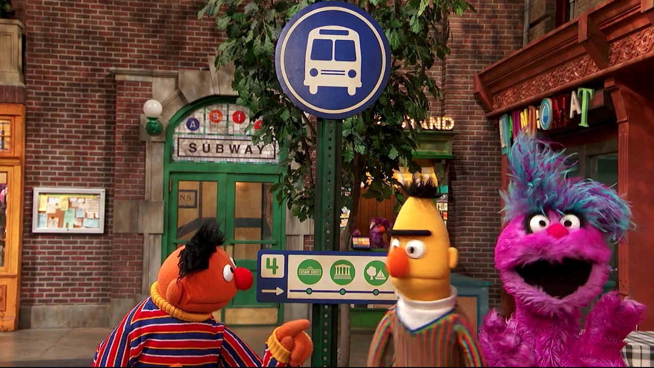 COLD OPEN | Ernie and Bert wait at the bus stop to set up today's theme of buses. Bert dismisses Ernie's claim that the bus stop is where passengers wait to be picked up by monsters. Sure enough, a monster (Leslie Carrara-Rudolph) appears and carries Bert off to the library. |
