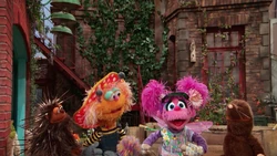 SCENE 1 | Abby, Zoe and Frankie sing "Happy Earth Day" in celebration of the holiday. They intend to commemorate the day by doing the kind act of making a special space for the bugs of the garden. They intend to do this with the help of Molly the Mole (Stephanie D'Abruzzo), an expert digger (though with poor eyesight) and a shy porcupine named Carl (David Rudman). Abby asks Zoe to hold her wand while he points Molly in the right direction. Zoe sees some paper flying past and goes to investigate. |