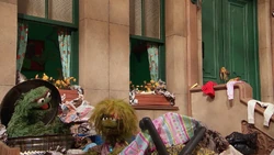 SCENE 1 cont'd | Grundgetta calls out Oscar to see what a beautiful mess Sesame Street has become. Oscar feels he might finally like living in the neighborhood after all. |