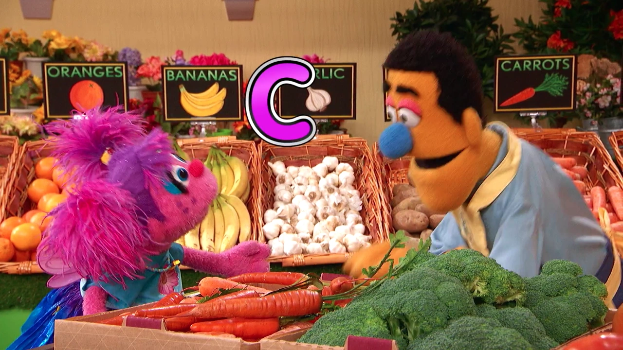 SCENE 1 cont'd | Abby reports her discovery to Alan. Meanwhile, Elmo visits the deli counter to find a C-word item. Big Bird also happens to be there, ordering Cole slaw. Elmo realizes this is a c-word and orders some as well. He brings it back to Alan and they wonder how Cookie Monster is doing. |