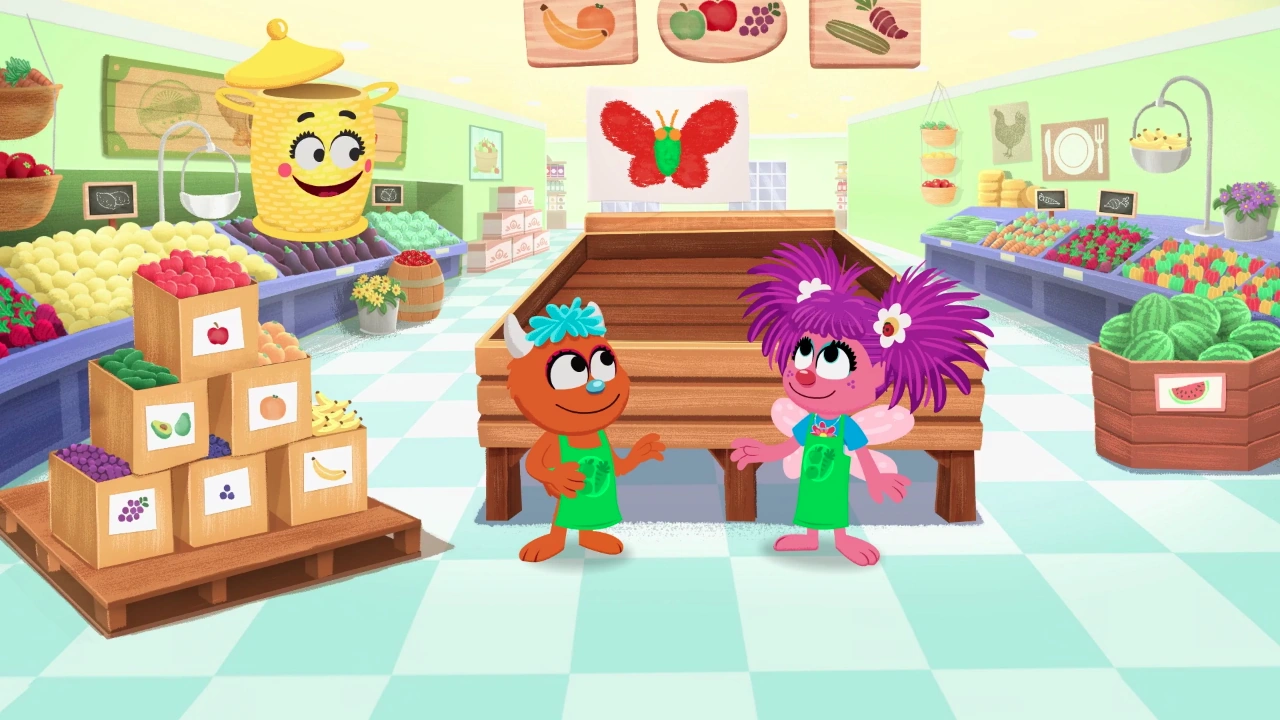 Cartoon | Abby's Amazing Adventures Basket brings Abby and Rudy to a supermarket, where their mission is to arrange a display of produce to make the shape of a butterfly. |