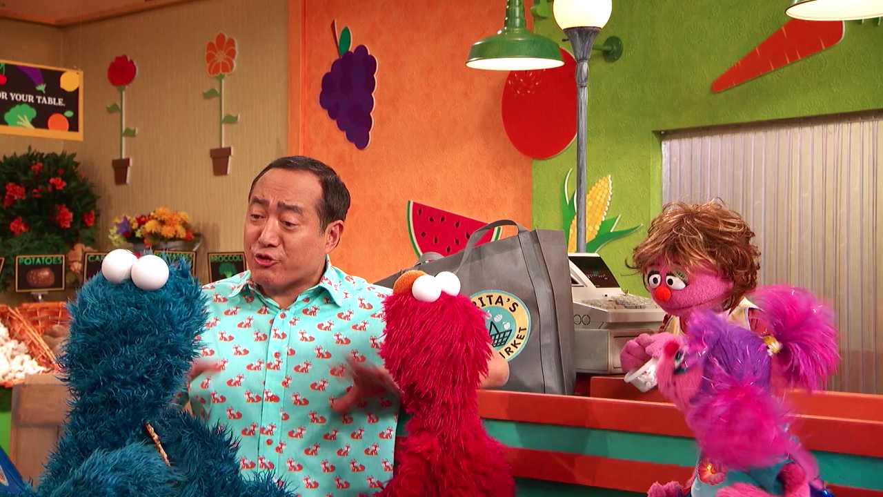SCENE 2 | Elmo and Abby play pretend supermarket and encourage the viewer to do the same. |