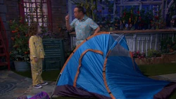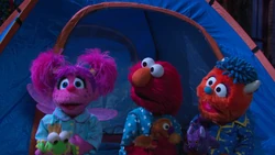 SCENE 1 | Charlie and her mom find Elmo, Abby, and Rudy out in the garden. Tonight, they're going to camp out there since Rudy has never gone camping before. He hopes he can see a shooting star for the first time and make a wish on it. Nearby, Alan has difficulty setting up their tent. The young ones invite Charlie to join them and everyone goes off to get ready, leaving Alan to battle the uncooperative tent. |