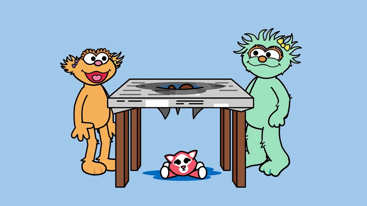 SCENE 1 cont'd | The monsters press onward and think of something else they can use. They decide to go with Gatito's blanket, which is thicker than the newspaper. They test it out and find that it does hold up, but the water starts to concentrate in the center and leak through, getting Gatito wet again. |